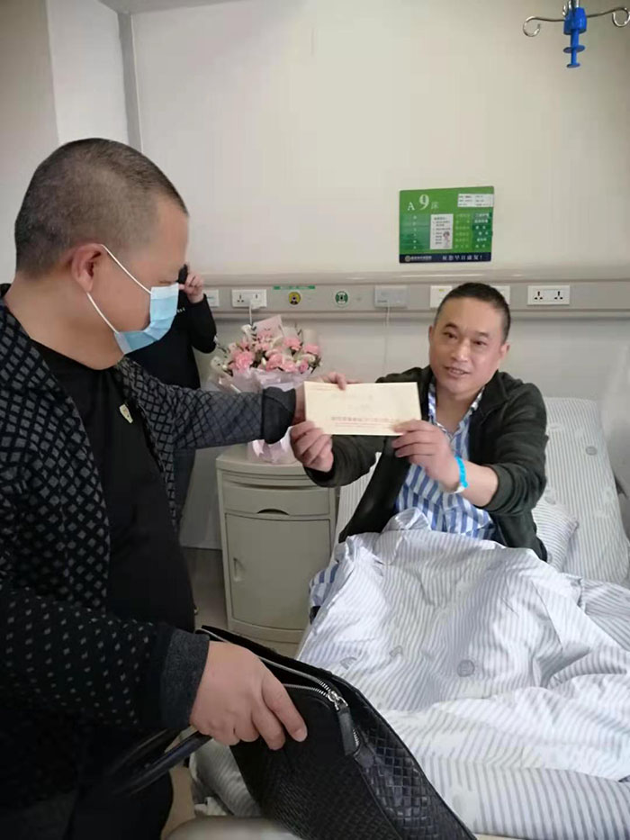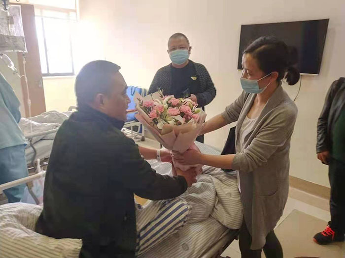 強波電力公司董事長孫波帶領企業員工看望慰問生病住院員工潘國禮